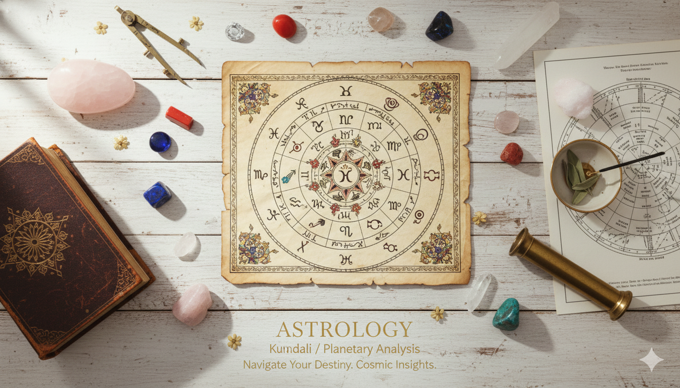 At Adhisthans, we provide personalized spiritual services including Tarot Card Reading, Astrology, Numerology, Healing Sessions, and Online Pooja Services. Each service is guided by experience, intuition, and authentic practices to bring clarity, balance, and peace into your life.
